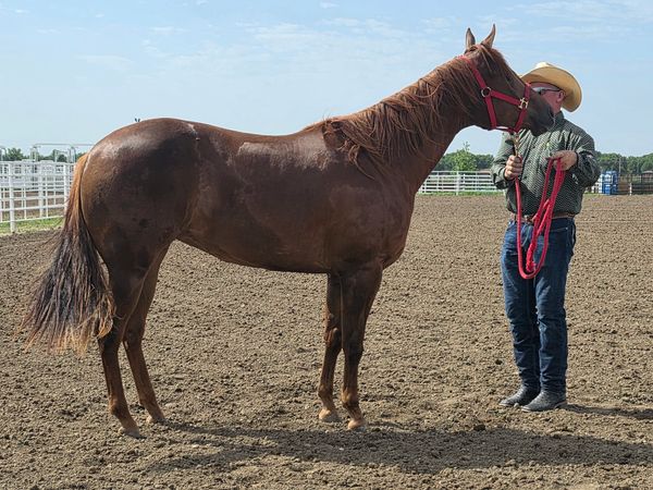 2023 AQHA Sorrel Filly sired by our stallion, Aces Are Hot and out of My Vitals Are Blue, a daughter of VS Code Blue that we showed for several years. This filly is already filling out into a beautiful show mare that will have the moves and pedigree to ride.